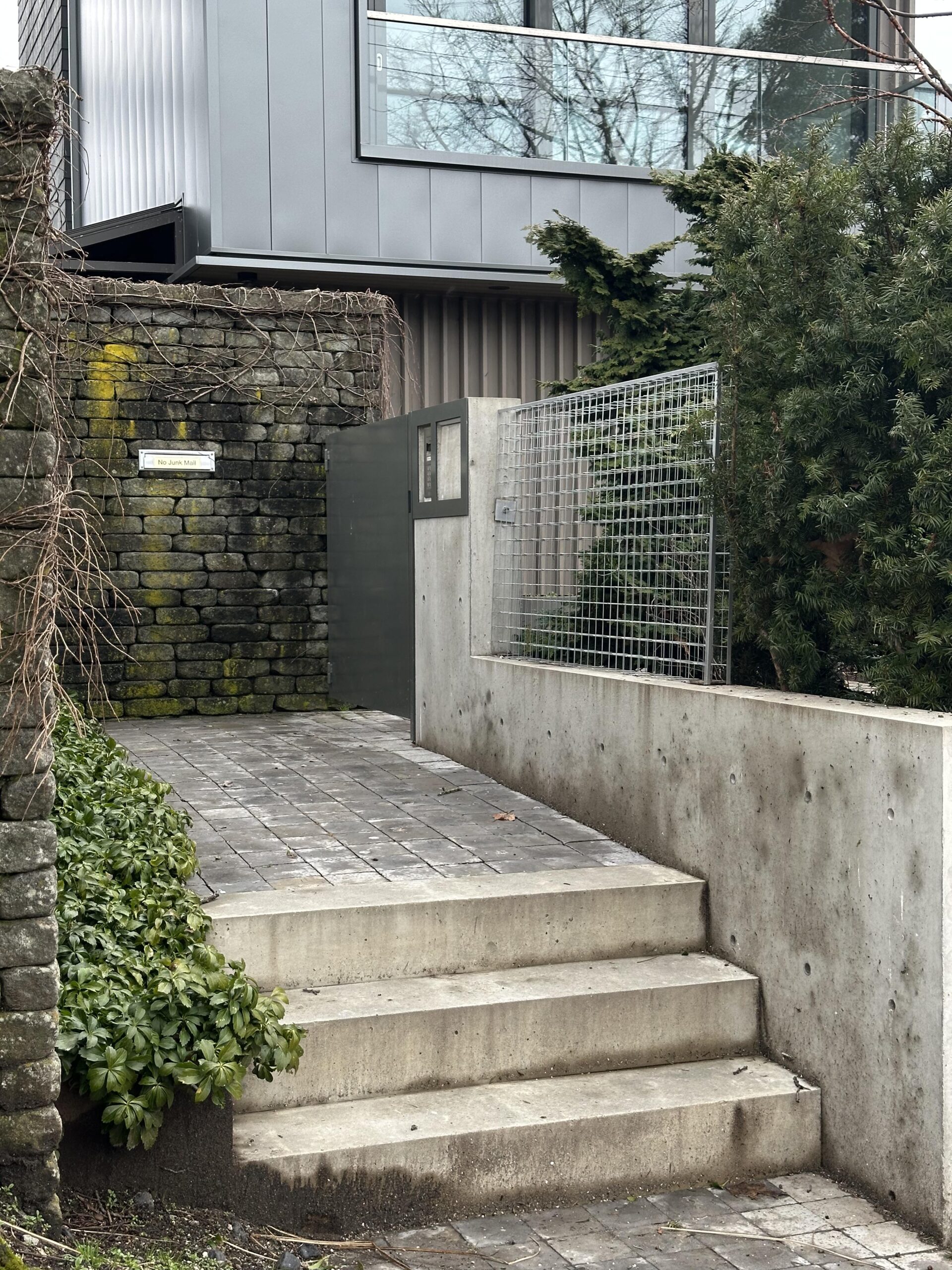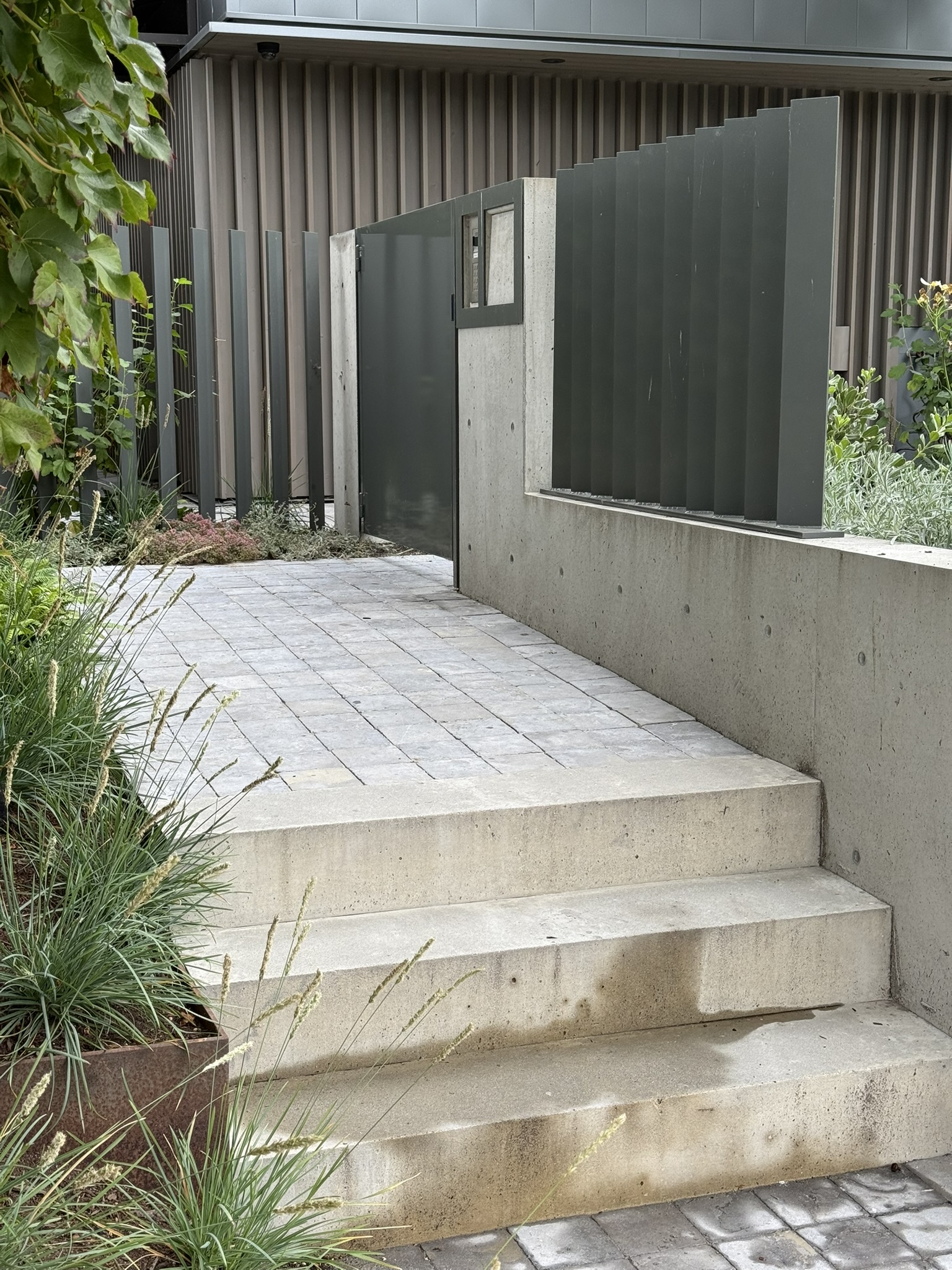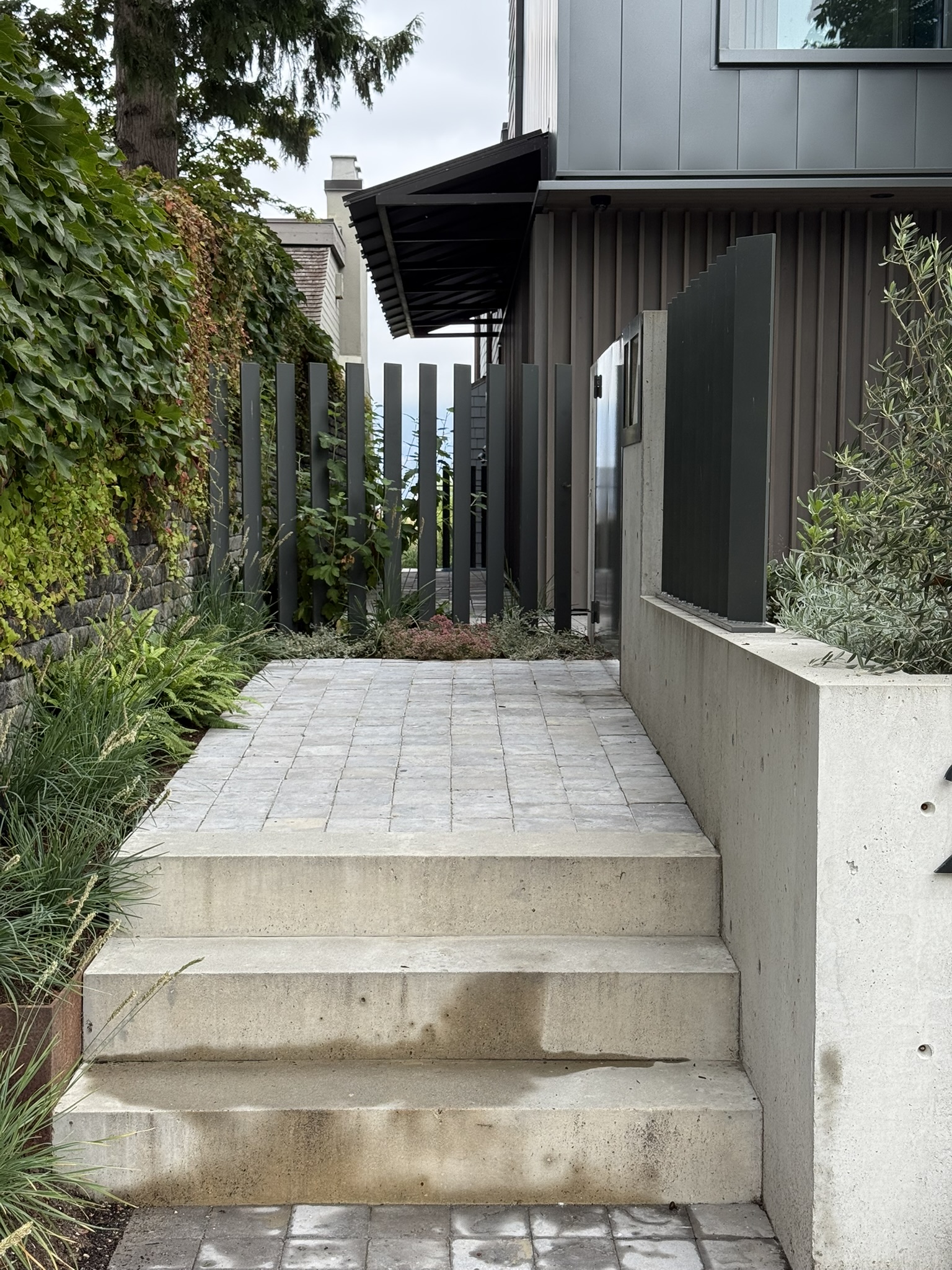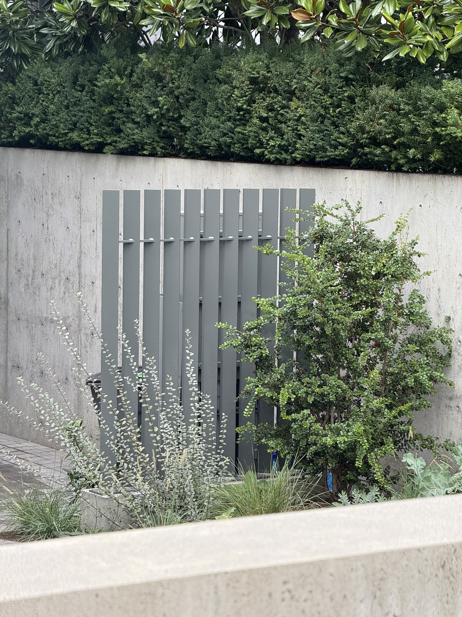 This custom fence design demonstrates how functional elements can enhance the overall landscape aesthetic. The design provides privacy and security while complementing the surrounding architecture and landscape plantings.